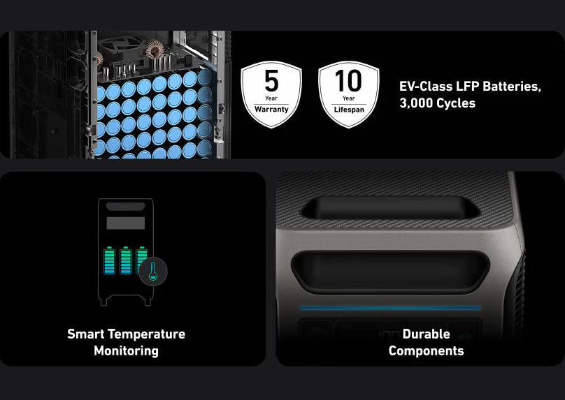 InfiniPower™ integrates the superior power of LiFePO4 batteries, ultra-durable electronic components, a state-of-the-art temperature control system, and impact-resistant structural design. Ensure the products built to last over a decade, even with everyday use at home or on the road.